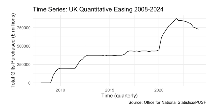 Since 2009, UK QE massively expanded the BoE’s balance sheet to suppress long-term rates and avert deflation, boosted GDP and CPI modestly in the early waves, stabilised markets in crises (2016, 2020, 2022), and—once rates rose—flipped from sending cash to the Treasury to drawing cash from it, while QT is now steadily shrinking those holdings.