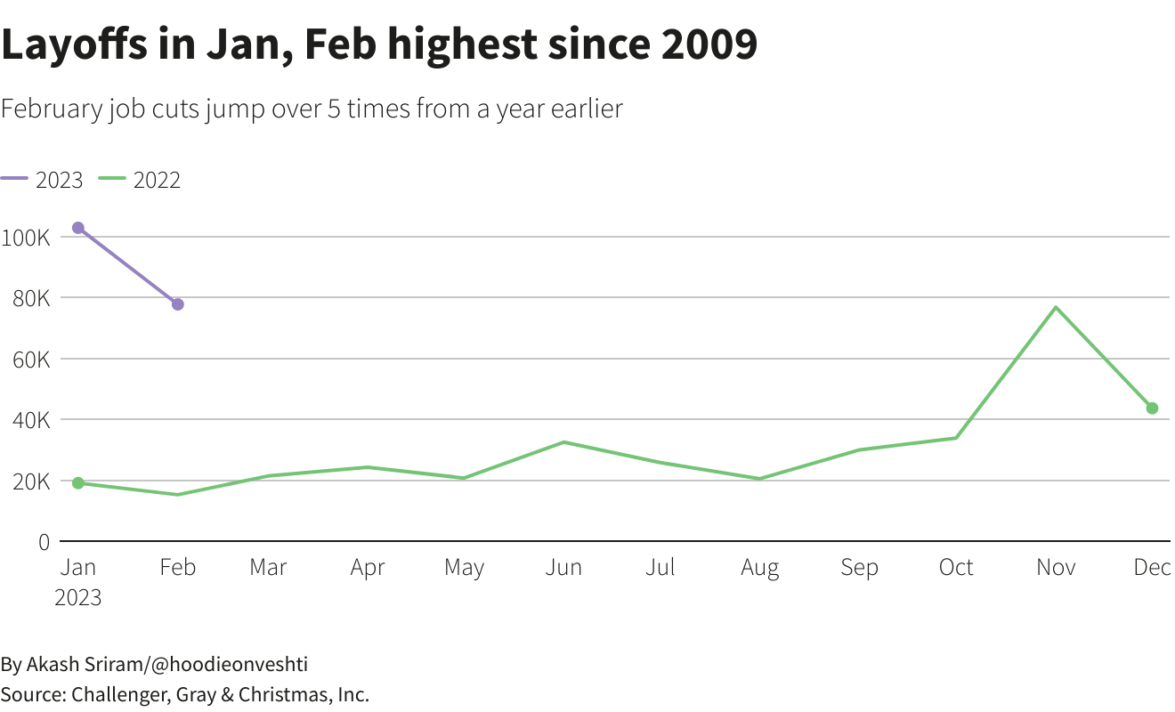 Reuters reported the amount of layoffs was the highest since the financial crisis at the beginning of the year.