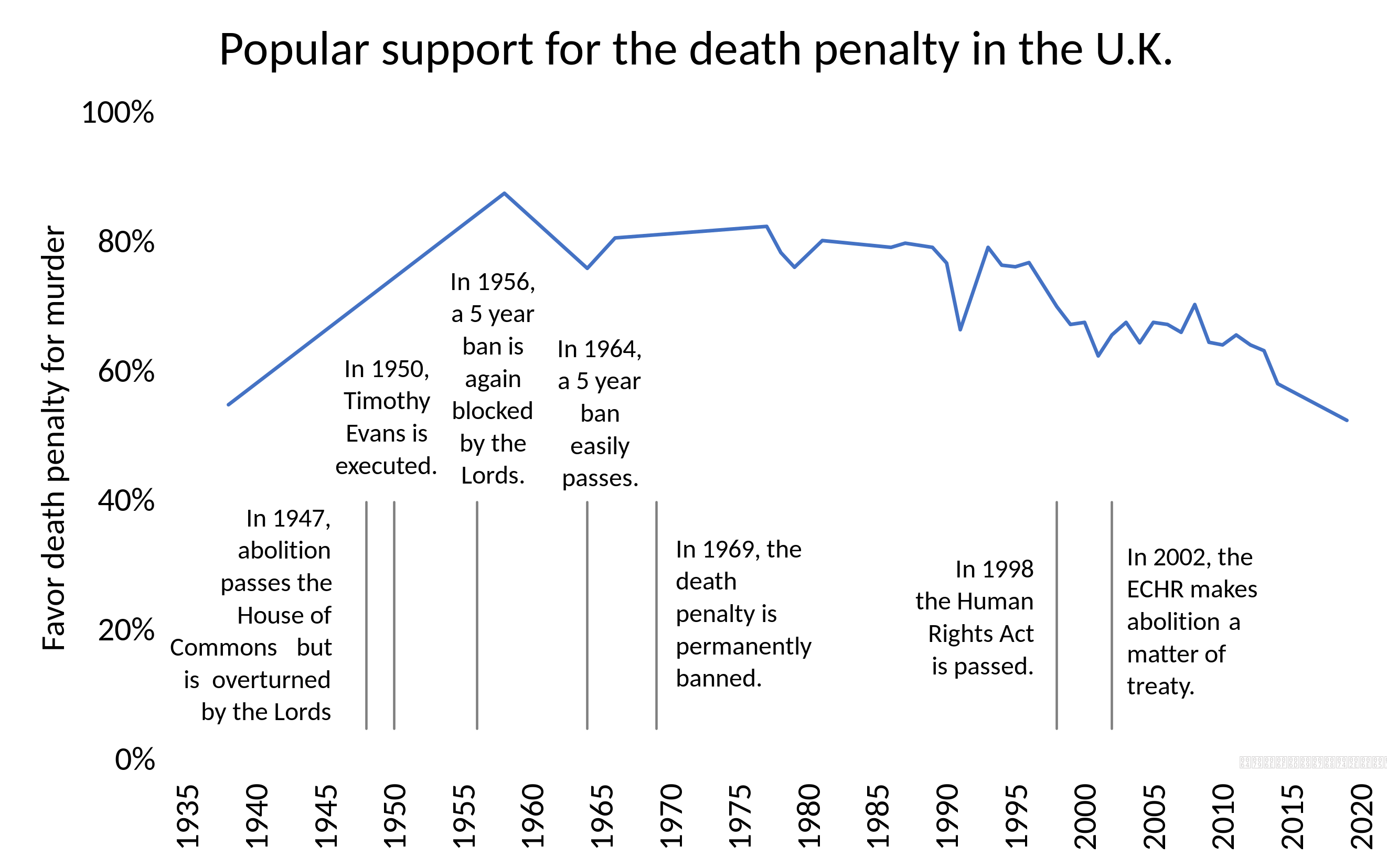 Polling throughout the 1970s, 1980s, and 1990s showed remarkable stability in public support for capital punishment, with approval ratings consistently exceeding 60 percent and reaching 75 percent for the most heinous crimes. The persistence of public support despite decades of elite opposition, media hostility, and educational campaigns demonstrated the deep roots of retentionist sentiment in British political culture. Parliamentary refusal to act on this settled public preference represented fundamental breach of democratic accountability.