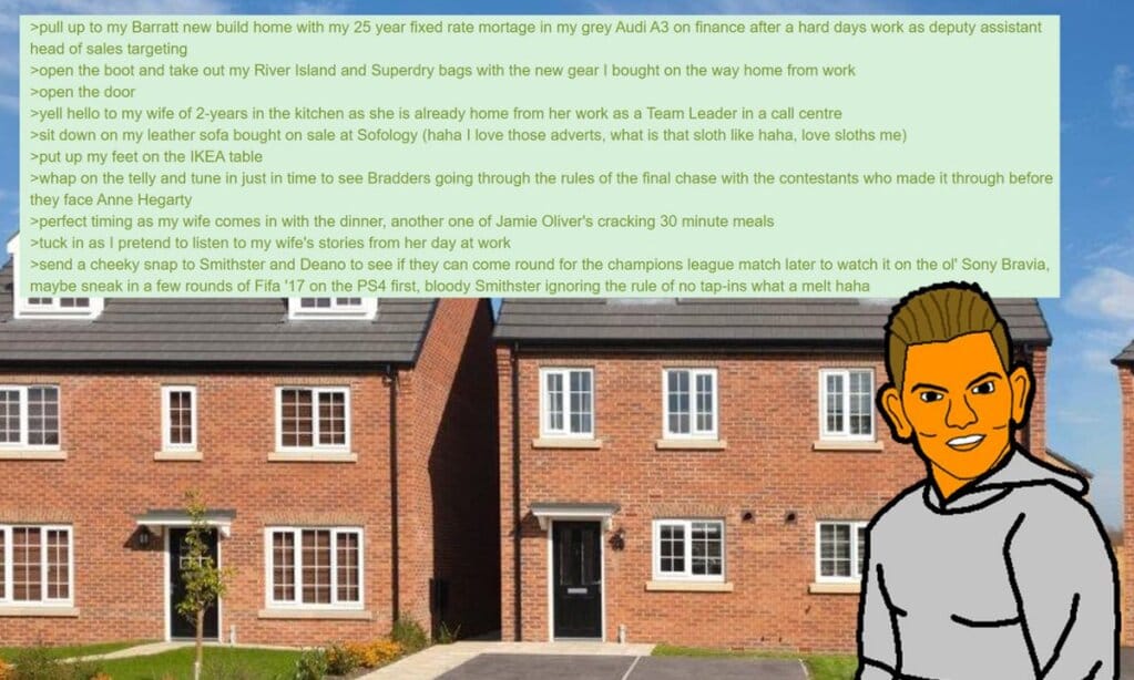 An archetypal young lower middle class British man living in a newbuild housing estate, stereotyped as culturally unsophisticated, lavish with money, heavily indebted and conservative-leaning. (Wiktionary)
