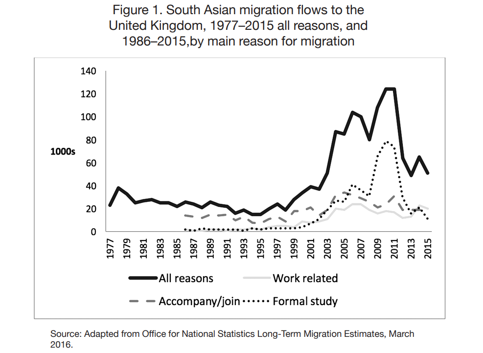 The overall Pakistani diaspora community rose from 747,285 in 2001 to 1,174,983 in 2011 (ONS, 2011). This data incorporates not only first generation migrants but also their second and third generation counterparts. However, it is the UK born Pakistanis who account for over half of the Pakistani population growth since 1991. The 2001 census revealed that 86 per cent of Pakistanis aged 0 to 14 were born in the UK and during 2001 to 2011, the total Pakistani born population increased from 308,000 to 482,000. (The Change Institute, 2009). Even though a considerable percentage of the population (around 30%) arrived before 1981 and before the stricter immigration controls, the highest percentage of arrivals (around 40%) was recorded during 2001 to 2011.